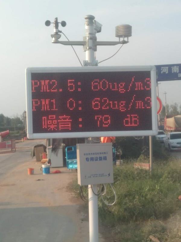 在該項(xiàng)目部門口,豎著一塊電子屏,上面不僅顯示氣溫、風(fēng)速、風(fēng)向、濕度和噪音,還顯示PM10和PM2.5濃度,這就是新近安裝的揚(yáng)塵在線監(jiān)測系統(tǒng)。該揚(yáng)塵在線監(jiān)測系統(tǒng)具有實(shí)時(shí)在線監(jiān)測污染顆粒物濃度、噪聲強(qiáng)度、氣象參數(shù)功能,24小時(shí)在線連續(xù)監(jiān)測,超過報(bào)警值時(shí)還能自動(dòng)啟動(dòng)監(jiān)控設(shè)備。